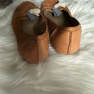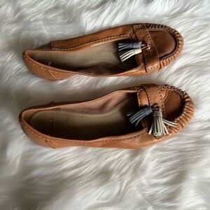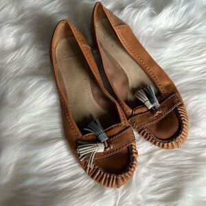 Clarks brown moccasins with grey/white tassels