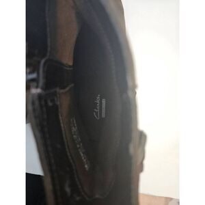 Clarks brown suede booties with side zipper. Size 9.5.