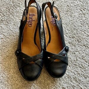 Clarks by Indigo Size 8 Perforated Leather slingback Pumps Heels Retro Pin-up
