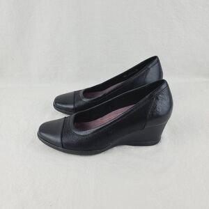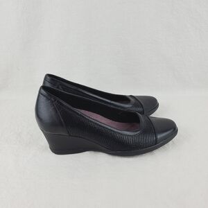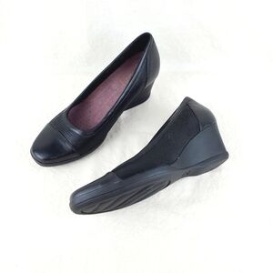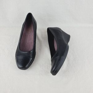 Clarks everyday active air Black leather wedge shoes size 6.5