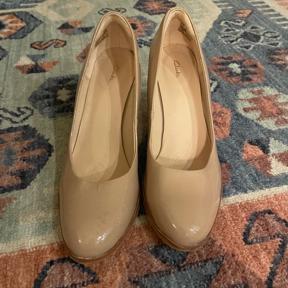 Basically new! Worn once to a wedding - see pic for the only flaw, a small black scuff. So supportive!