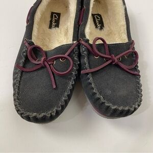 Clarks leather suede moccasin slippers house shoes size 9 gently used