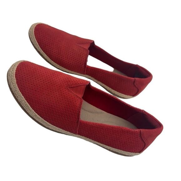 Clark’s red suede upper with jute lower shoe With rubber sole six 6.5