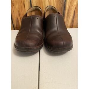 Clarks slip on soft leather brown size 5 chunky heel un structured women’s