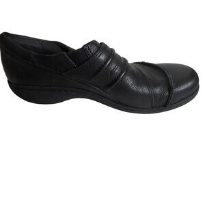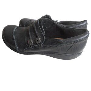 Clarks soft cushion Sz 7.5 M Black Slip on button Shoes
