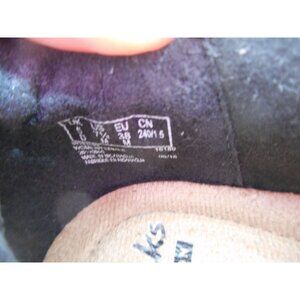 uppers are in good condition - feel like leather but could be synthetic - no label - soles have little to no wear