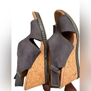 Clarks soft cushion cork wedge heel. Blue suede sandal. Size 8. Good condition except small wear as seen in picture