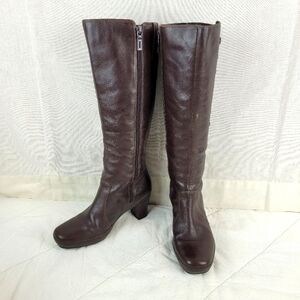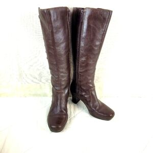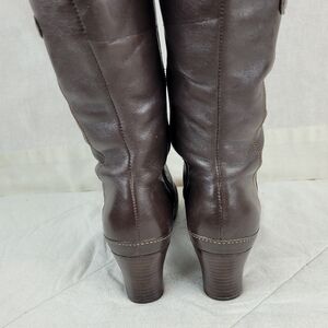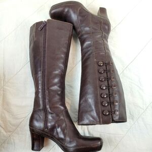 Clarks tall leather vintage brown boots leather buttons zipper grandma chic 6