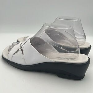 Clark’s white leather slide on open toe low wedge sandals size 9m