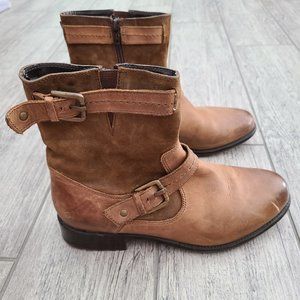 Clarks women's biker boots brown leather mid calf buckles size 8