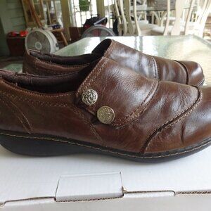 Clark's women's size 9 1/2 W, Ashland Alpine Bendables, brown leather, slip on loafers