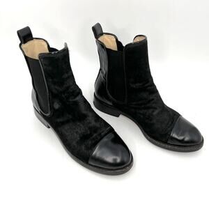 Preowned in good overall condition. Flaws include wear to the soles, chips on the heels, and some light balding to the ponyhair in a few spots.