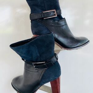 Clarks Artisan Kacia Garnet Navy Leather 7,5 M Zip Up Buckle Harness Ankle Boots