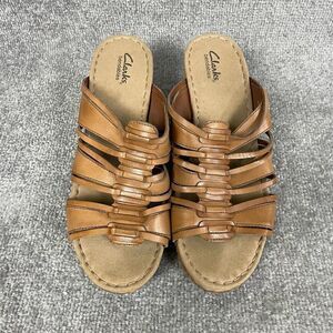 Clarks Bendables Women's Wedge Sandals Tan Brown Strappy Espadrille Size 9.5M