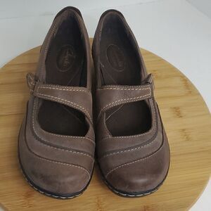 Clarks Bendables Mary Janes Brown Leather Women's Shoe Size 10M