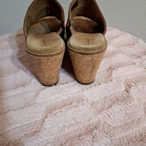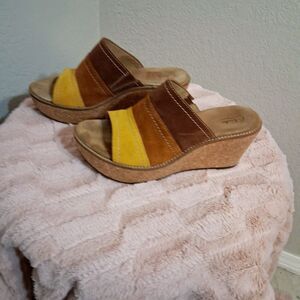 Clarks Brown and Yellow Wedge Sandals with Cork Platform Size 8.5M