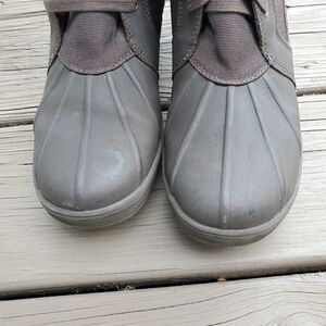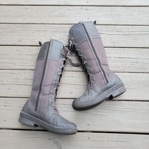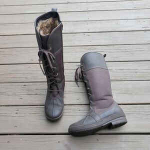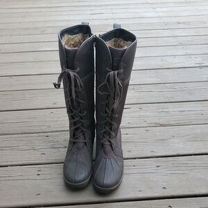 Clarks Carima Pluma Brown Canvas Leather Faux Fur Lined Waterproof Duck Boots