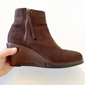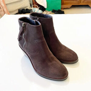 Clarks brown suede side zip wedge boots size 7.5. 3” wedge heel. Preowned, very light wear, see photos. Perfect to pair with all of your sweater weather looks this fall!