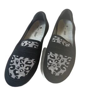 Clarks Cloudsteppers Womens 7M Flat Comfort Casual Penny Loafer Shoe Black Print