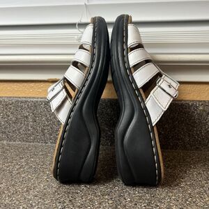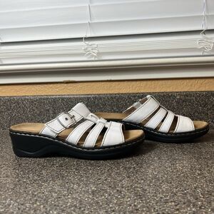 Clarks Collection Sandals Comfort Casual White Leather Slip On Open Toe Wedge Women's Size 9.5M