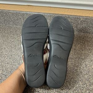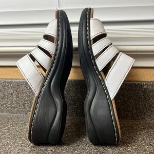Clarks Collection Sandal Casual White Leather Slip On Open Toe Wedge Womens 9.5M