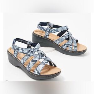 Clarks Collection Strappy Sandals - Merliah Rose Navy Snake size 7.5 Narrow