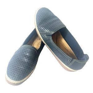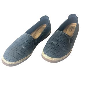 Clarks Collection Womens 10M Comfort Casual Blue Leather Espadrille Slip On Flat