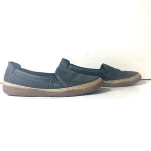 Clarks Collection Women's Size 10M Comfort Casual Navy Blue Leather Espadrille Slip On Flats