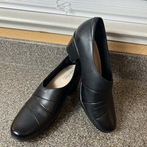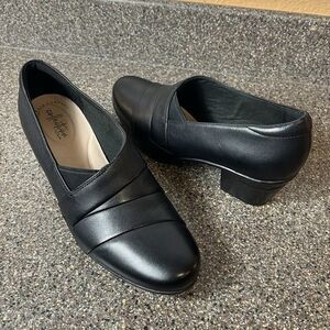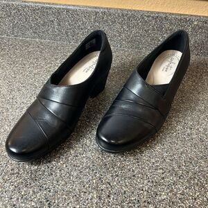 Clarks Collection Women's Size 9 M Black Leather Heels Slip On Classic Comfort Pump
