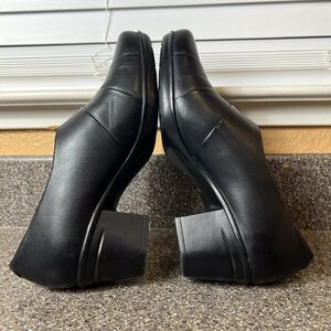 Clarks Collection Womens Sz 9 M Black Leather Heels Slip On Classic Comfort Pump