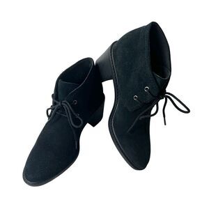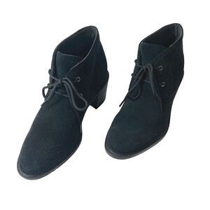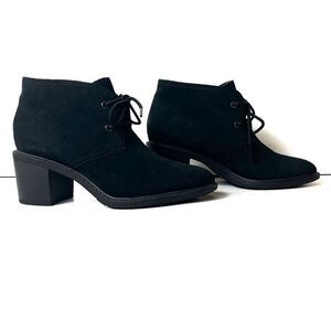Clarks Collection Women's Size 9M Black Suede Granny Block Heels Lace Up Ankle High