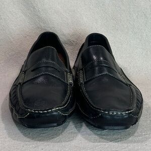 Previously worn; made in Brazil; leather uppers; unlined; cushioned insoles--heel half is leather and ball of foot fabric; rubber soles. Shoes are in very good condition. #clarks #bootandshoetraders