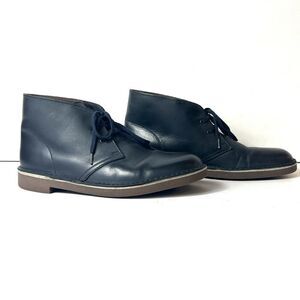 Clarks Navy Blue Leather Chukka Boots Mens Size 10 M Lace Up Comfort Casual Shoe