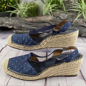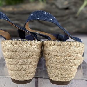 A fusion of textures defines this women's sandal from the Clarks® Artisan Collection. crafted of cute fabric uppers with a summery woven wedge, it cushions the foot with extra padding at the heel, synthetic linings, an ortholite® footbed, and rubber outsole. this slingback sandal adds a playful, on-trend finish to your outfit.