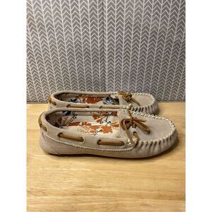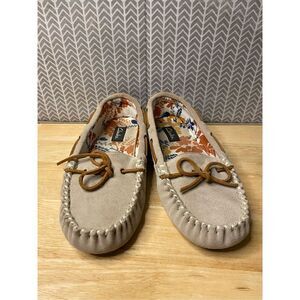 Clarks Tan Suede leather Slippers Sz women’s 9 Good preowned condition