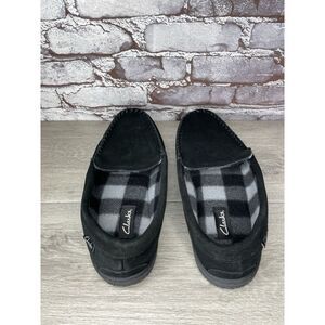 Clarks Venetian Black Suede Fur Lined Slip On Loafer Moccasin Slippers Men’s 10M