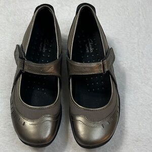 Clarks~Wave~Cruise Women's Size 7 Metallic Leather Comfort Mary Jane Shoes Flats