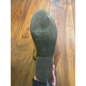 Women’s size 8 1/2 Brown Clarks shoes with leather buckle details and small heel
