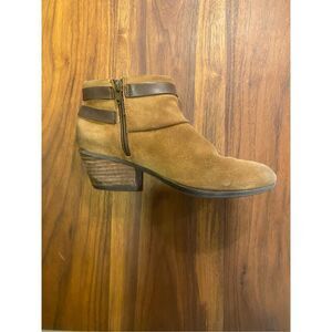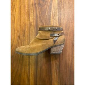 Clarks Women's Brown Suede Leather Buckle Details Low Heels Ankle Boots Sz 8 1/2