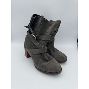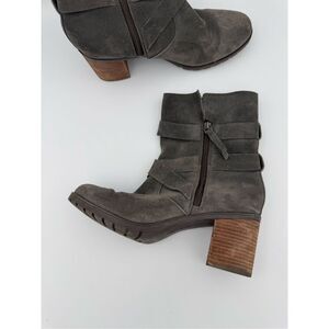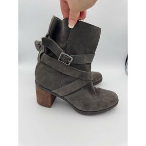 Clarks Womens Gray Malvet Doris Suede Block Heel Buckled Ankle Boots Size 9
