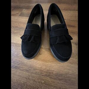 Clark's Women's Sharon Dasher Black Suede Slip-On Loafers Shoes Size Preowned 8