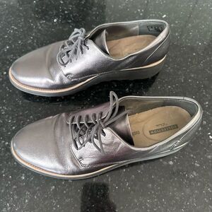 Clarks Womens Size 9 M US Sharon Noel Gun Metal Leather Platform Oxfords Lace Up