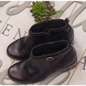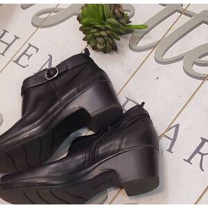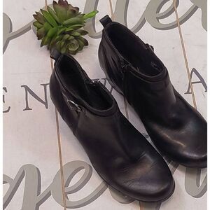 Black ankle boot . Leather 2inch block rubber heel.GUC