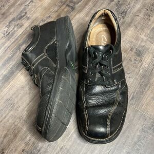 Lightweight Flexible Breathable Shock Absorbing Black Leather w/ Contrast Stitching Casual Comfort Shoe Men's Northfield Lace-Up Oxford Black Oily Clarks #82305