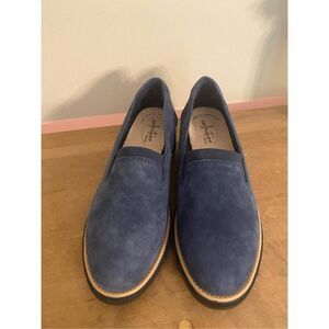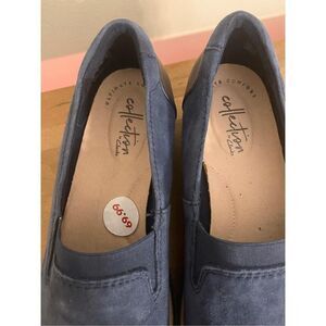 Clarks size 6 NWT Sharon Dolly Platform Loafer navy blue Suede