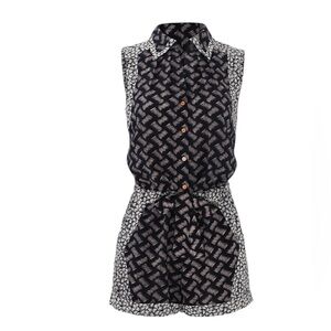 Chic navy jumpsuit with a stylish pattern, perfect for any occasion.