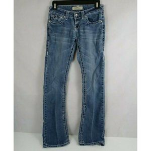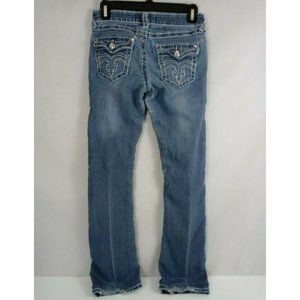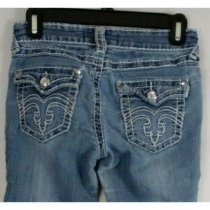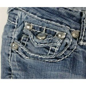 Clash Women's Distressed Whiskered Embroidered Jewel Frayed Cuff Jeans Size 3