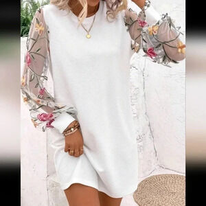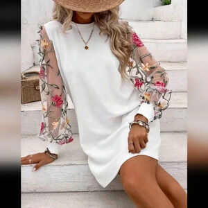 Clasi Holiday Flower Embroidery Mesh Splice Dress