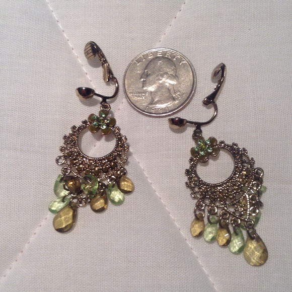 Gold with green and yellow stones, costume earrings