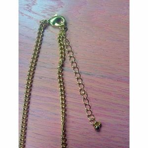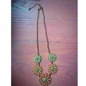 Gold chain clasp necklace with 5 beaded flowers, in perfect condition, never been worn. Flowers vary in color and hang in center, necklace can be adjusted in length with clasp